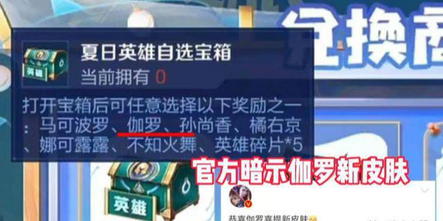 而且在夏日英雄自选宝箱中,马可波罗、伽罗和孙尚香都是奖励之一,其中马可波罗和孙尚香已经出了新皮肤了,而且还是传说皮肤,因此伽罗的估计也不例外,甚至是典藏级别。从曝光的海报来看,伽罗的新皮肤还是很值得入手的,不过也有可能是自制,估计很快就会官宣了。