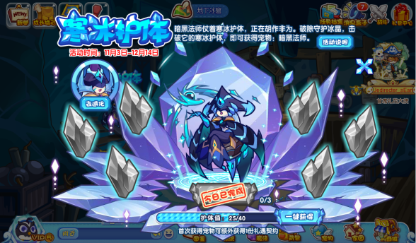 2、当周围的冰晶全部呈现黑色状态就可以与暗黑法师进行战斗了,每次战斗胜利均会降低其护体值!每日只有三次机会!