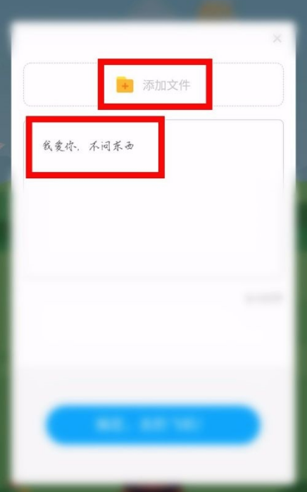 4、接着输入扔飞机想要发布的话,点击添加文件。