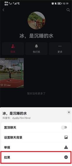 4、最后就可以看到下方的【拉黑】进行拉黑屏蔽私信就可以完成拒收一个人的私信。