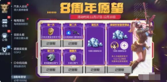 穿越火线8周年愿望活动怎么玩?最近穿越火线手游一直在推出八周年活动,给到玩家的福利也是非常丰富的,像是这次小编要介绍的8周年愿望活动就是如此,玩家只需要持续登录游戏就能获取奖励,看着是不是很简单呢。这次是准备让玩家薅羊毛了,该活动将会从11月17日一直持续到12月10日,每天上线都能领取到相应奖励,当然玩家也可以将好友邀请进来一同组队打游戏,邀请成功后将会获得抽奖机会,不过活动期间每人都只有两次抽奖机会,是有保底机制的,最少能够拿到3776钻石,要是运气好的话还能尝试挑战8888钻石呢。对该活动很感兴趣的话,可以点击查看更多攻略详情。