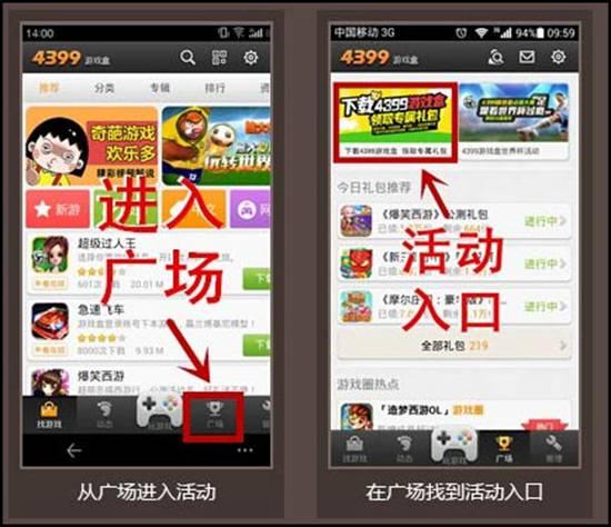 安卓:首先通过右上角的设置按钮登录你的4399账号,然后再通过广场找到如图所示的活动入口。