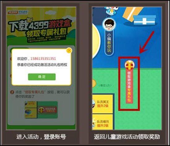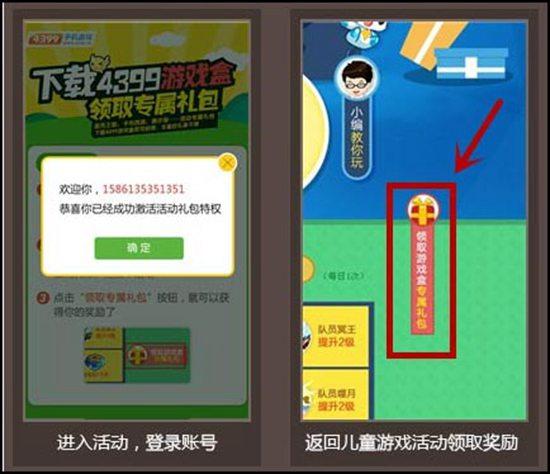 接下来,就是重复上面一样的步骤。激活你的4399账号游戏特权,然后返回你参加的活动,点击右边的领取专属礼包的挂件,就能领取游戏特权了。