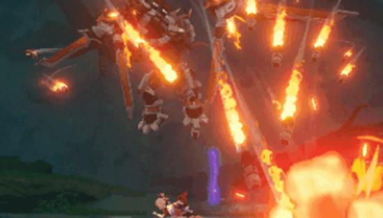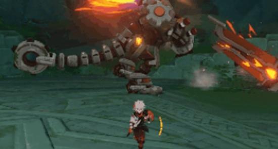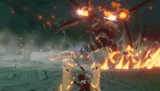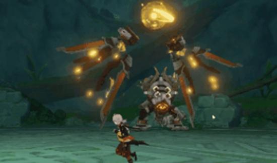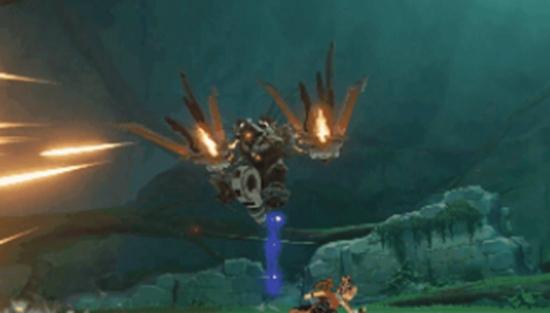 「兆载永劫龙兽」向着玩家位置发起一次高速的冲击,期间「兆载永劫龙兽」的头顶弱点处于暴lu状态,可以通过攻击弱点的方式使其瘫痪。
