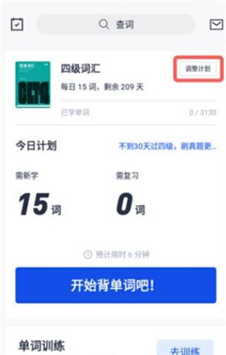 1.首先我们打开百词斩软件,然后点击右上角的调整计划按钮(如图所示)。