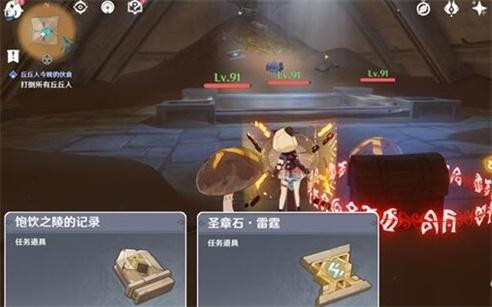 5、最后我们回到大厅,借助风场上去,有两个宝箱打开获得任务道具饱饮之陵的记录和圣章石·雷霆。
