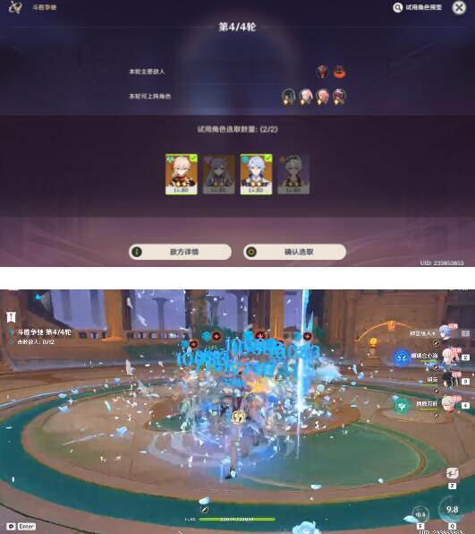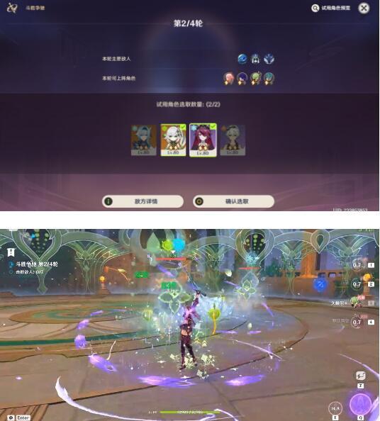 2、第二轮新增使用角色纳西妲、罗莎莉亚,我们的队伍可以选择纳西妲、行秋、久岐忍、罗莎莉亚。