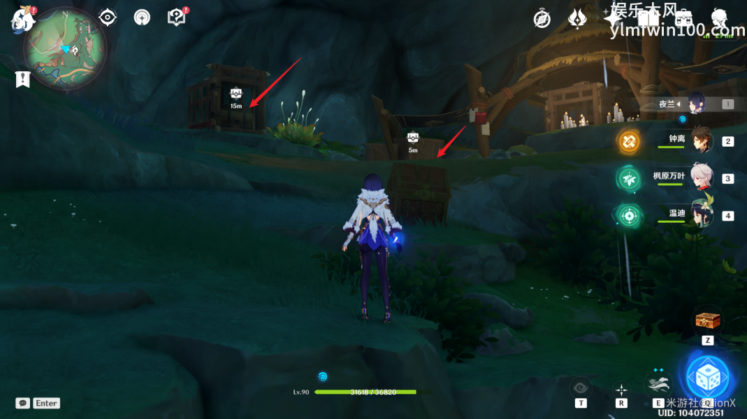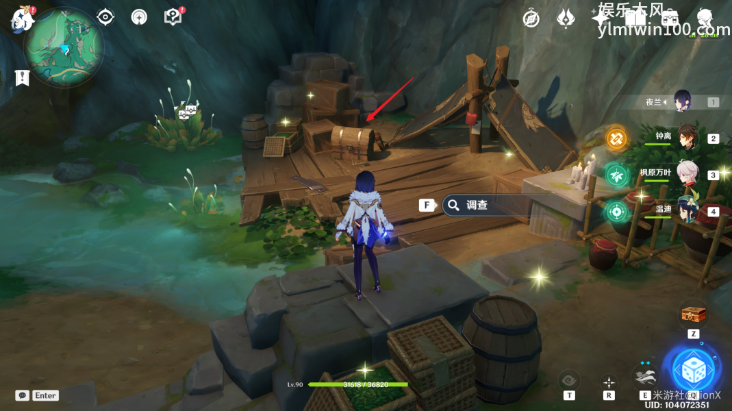1、首先来到下图中的位置,击败镇守宝箱的遗迹机关。