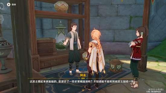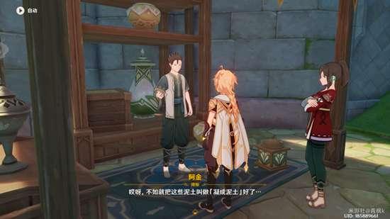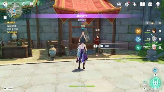 1、进入须弥城中,找到阿金对话接取凝成泥土的委托任务。