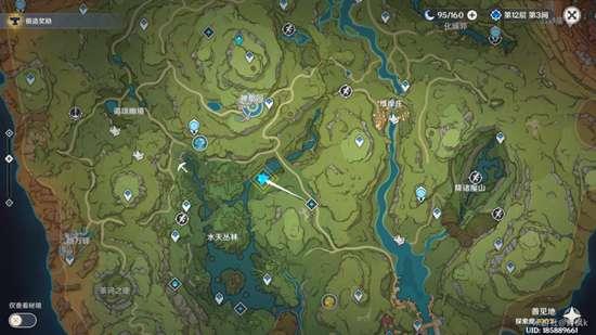 4、派蒙会给我们提示,让我们在小河边上找找看。