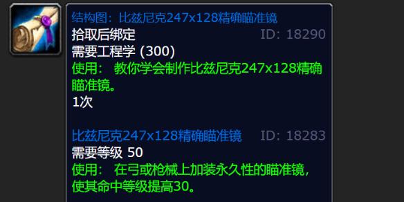 魔兽世界wlk比兹尼克247x128精确瞄准镜图纸掉落位置,wlk比兹尼克247x128精确瞄准镜图纸掉落位置是可以在系统NPC角色那边找到的,因为这个图纸一般来说是可以让大家,获得之后制造瞄准镜的,也可以让大家更好的完成当前的猎杀任务,只要是获得图纸之后,使用各种各样的材料,都可以让玩家们进行物品合成,下面一起看下瞄准镜图纸获取教程吧。
