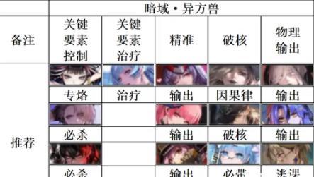 无期迷途暗域异方兽阵容推荐攻略无期迷途这个游戏中有很多的角色,而且每一次的战斗大家都可以挑选5个角色上阵,所以能搭配出的阵容也是非常的多,对于遇到不一样的BOSS需要大家挑战的时候,能够选择的阵容也是非常多的,其中暗域异方兽阵容是大家目前遇到的一个难题,这个是现在游戏中破碎防线这个关卡中难度系数最高的一关,比较的难对付,很多的玩家们不知道暗域异方兽应该怎么打,用什么阵容去面对,那么下面小编就给大家带来相关的介绍无期迷途暗域异方兽阵容推荐攻略,有需要的话可以看看。