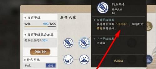 3.选择提升厨师等级,解锁对应的钓鱼天赋。