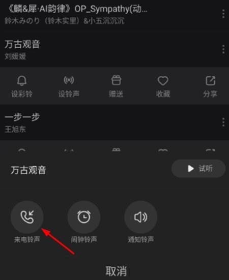 4、如下图所示,我们在选择设为来电铃声。如此一来,来电话的时候会传来你喜欢的音乐了。