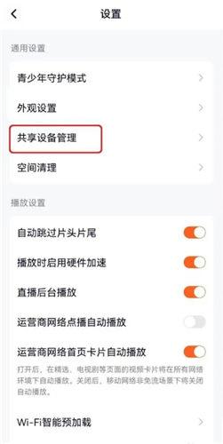 1、进入腾讯视频,选择设置页面,打开共享设备管理选项。