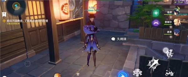 2、在托马所在位置下方楼梯的方向,找到万国商会的会长「久利须」对话,了解商会成员的处境,得知当前商品受到垄断。
