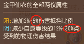 1、金甲的两仪阳属性与金甲的基础属性效果相加,抵挡比例最高的是