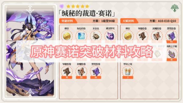 原神的3.1版本中增加了新的五星角色[赛诺]。有玩家想要为赛诺准备突破材料,但是不知道有哪些,也不知道需要的数量有多少。今天小编为各位玩家带来了原神赛诺突破材料攻略,需要这个攻略的玩家快来看看吧。
