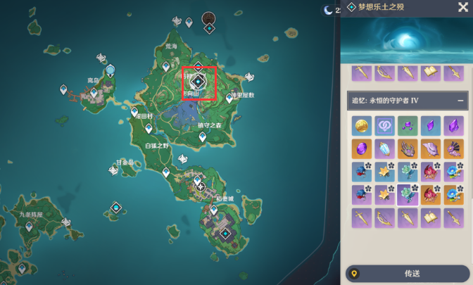 影向山的周本[梦想乐土之殁]掉落,每周一次。(完成雷电将军传说任务:天下人之章·第二幕[须臾之梦]后开启)