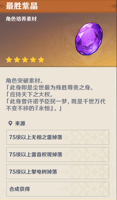 无相之雷,雷音权现,掣电树,以及各大周本掉落。