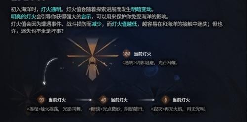 3、玩家的灯火值越低,那么就更加越容易在和海洋的接触中迷失。