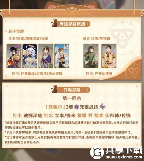 「卯师傅」:本卡组中搭配了不少食物牌,且达达利亚在施放战技后通常通过重击输出,对骰子颜色要求不高,该卡产生的随机骰子也能够很好的利用,搭配「迪娜泽黛」能变出大大魔术。