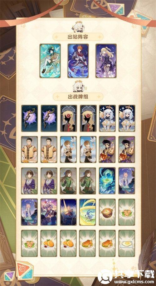 食物牌:搭配了0费的甜甜花酿鸡,仙跳墙1张用以提高元素爆发斩杀线,提瓦特煎蛋1张来防止暴毙,莲花酥与土豆饼均为常备生存食物牌,在卯师傅回费加持下,不用太担心食物牌的费用消耗。
