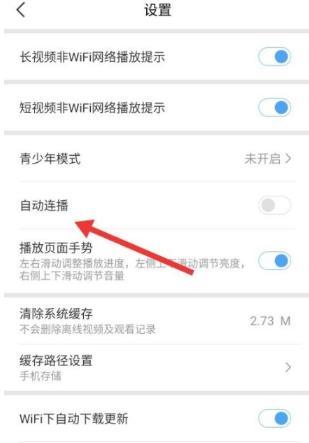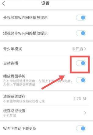 第五步:最后,当【自动连播】后面的开关变成蓝色后,自动连播功能就开启了。