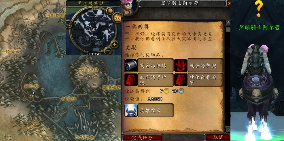 完成NPC:黑暗骑士阿尔蕾(冰冠冰川,黑色观察站)